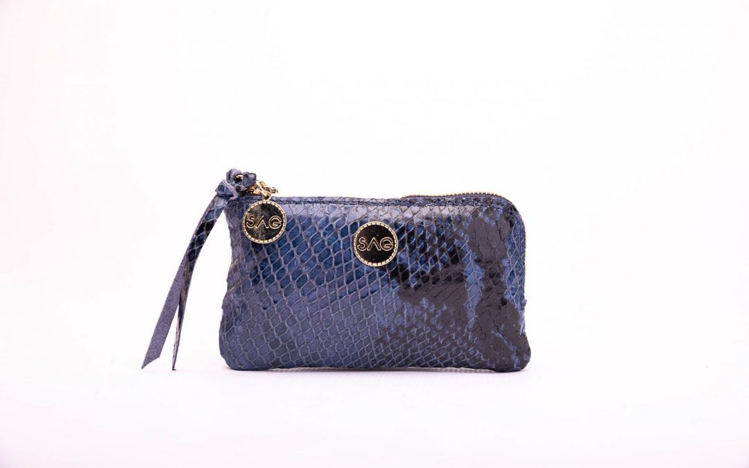 Monedero Ele Xs Plus grabado serpiente negro y azul frontal