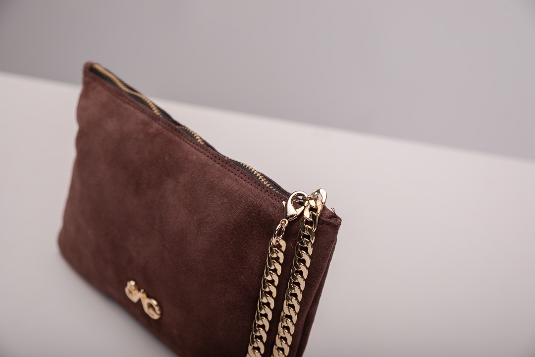 El Pouch Pulsera Marrón Arena está confeccionado en piel serraje de vacuno de alta calidad, seleccionada por su suavidad y su textura natural. Su diseño limpio y minimalista lo convierte en un bolso atemporal, pensado para acompañarte temporada tras temporada.