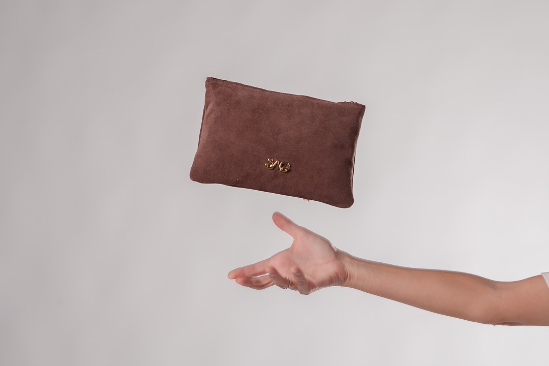 Pouch de serraje en color arena con asa pulsera. Un diseño limpio, atemporal y artesanal que nunca pasa de moda. 🤎